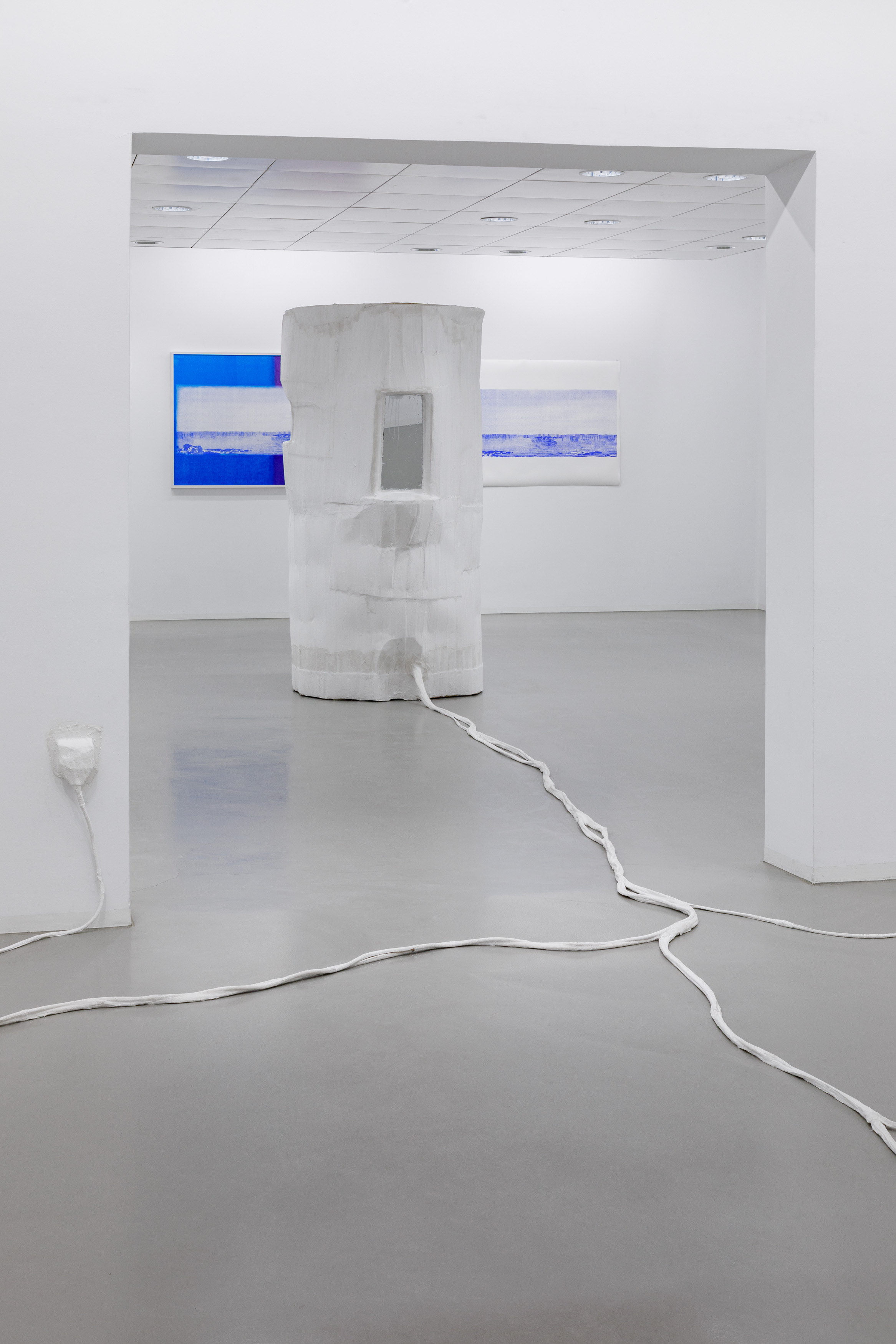 In the first, a plaster sculpture by Severin Hagen functions internally as a recording booth. In here, people can donate their voice to the exhibition. The voices of the visitors are transmitted into the large exhibition space, where 6 loudspeakers reproduce them in a chaotic choir.